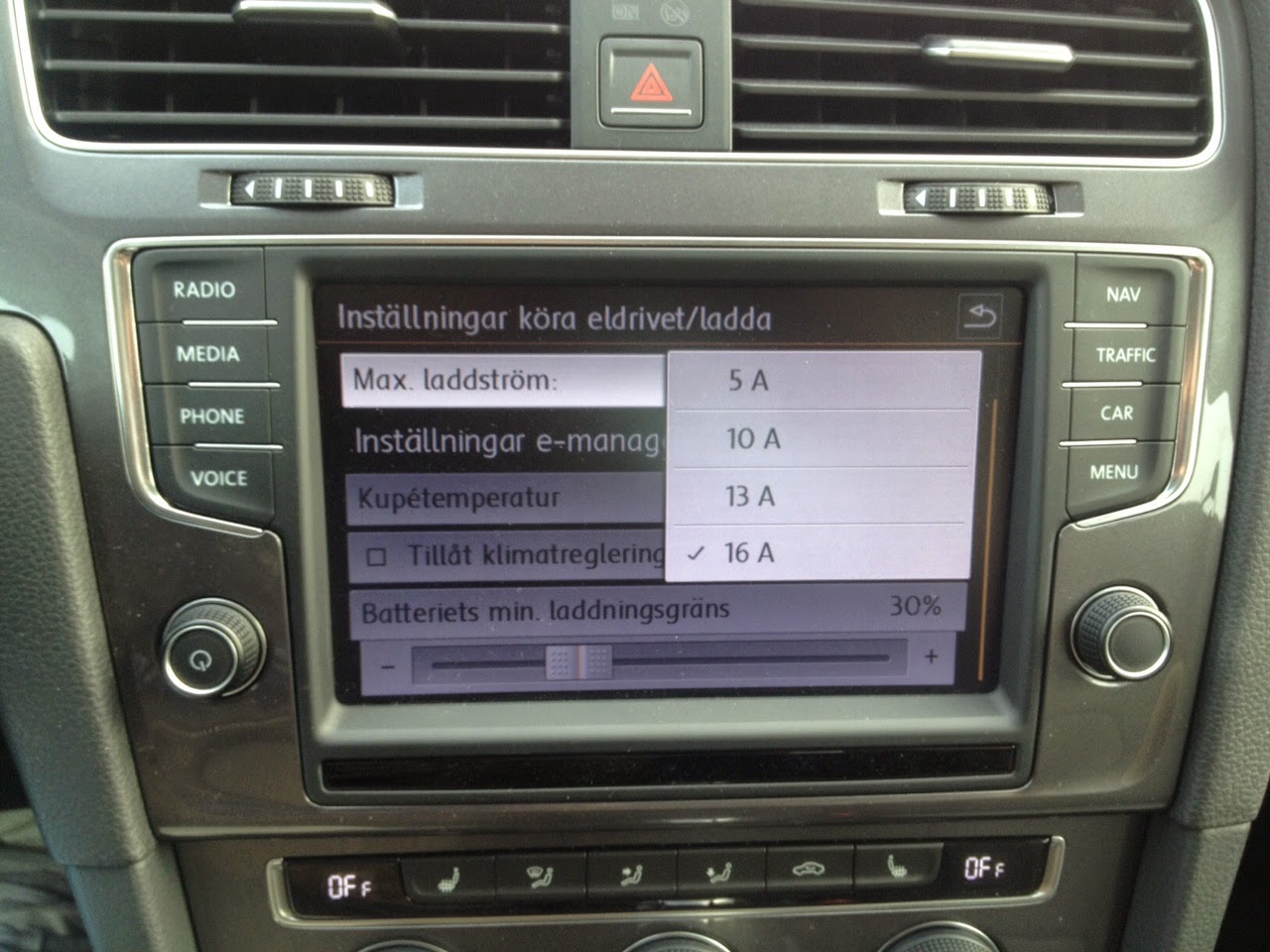 Dag 3, utmaning! Jo då, 2 dagar med bara positiva upplevelse och överraskningar med eGolf har tvingat mig att tillbringa dag 3 med att försöka knäcka kompromisslös VW Das elbil och hitta svag punkt! Till hjälp så har jag hela familjen, vi är 2 vuxna och 2 barn som brukar en lånad demo eGolf och försöker komma på vad är mest negativ med bilen. Dotter har hittat ett lite störande ljud som kommer från bältespännare back på passagerare sidan, ingen skandal som kan säkert åtgärdas med lite WD-40 spray eller liknande. Back luckan öppnas på så sett att man vrider VW symbol och jag hittar att det inte svarar så skarpt alltid som resten av utrustning på bilen. Original laddkabel som kommer på köpet är ganska styv och jag skulle använda eget säkert. That’s it när det gäller vad vi hade hittat för mindre bra, förutom prislapp som är ganska högt men i samma nivå som andra bilar i samma klass.